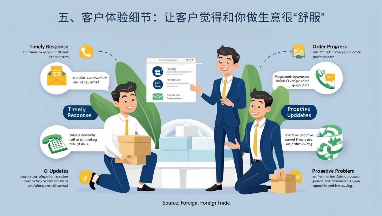 外贸生意不仅仅是产品和价格的竞争,更是服务细节的比拼。比如: