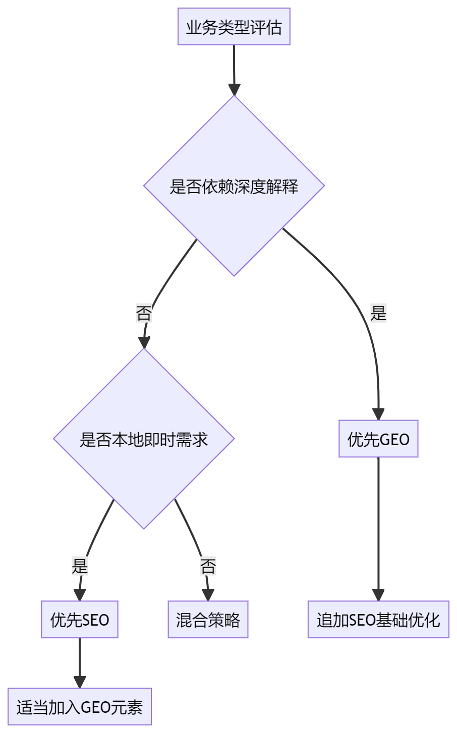 | 项目 | 纯SEO策略 | 纯GEO策略 | 混合策略 |
